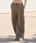 Women’s wide leg pants. Elasticated waist with long round cord drawcord. Curved front side pockets. Tonal topstitching detail. Co-ordinates with new lounge sweats range. Brand-free, for easy rebranding. Contains recycled cotton and recycled polyester.